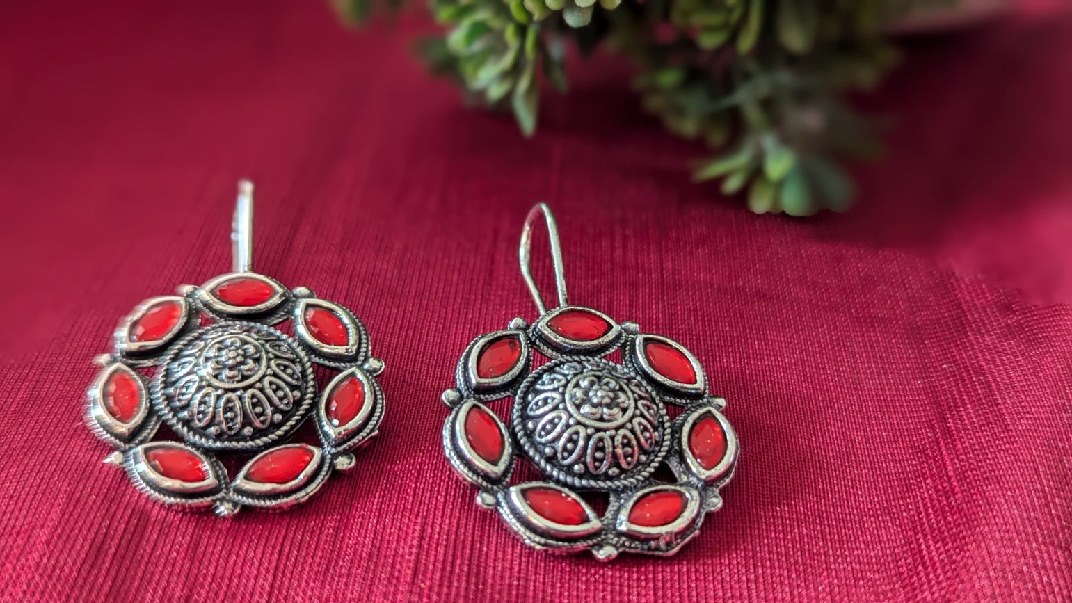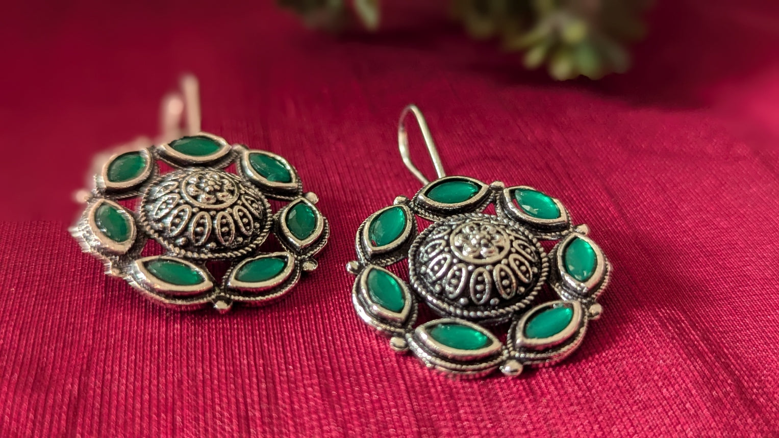 सिल्वर ऑक्सीडाइज़्ड कुंदन हुक इयररिंग्स
